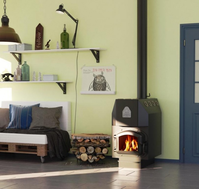 Внешний дизайн печей выполнен в цвете «антрацит». Модификации печей различаются комплектацией: стальная или чугунная дверца со стеклом, выход дымохода вверх или назад.